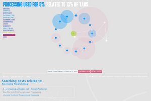Delicous Soup shows related del.icio.us tags in a circular graph manner: