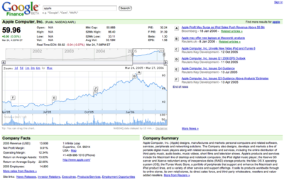 2006-03-27: Google Finance - Interactive Flash graphs to explore stock price data