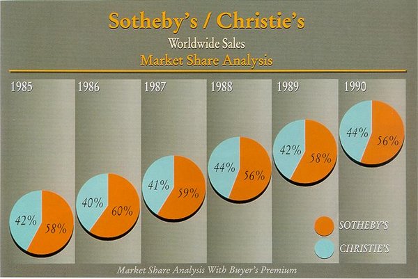 - The difference between market shares is easy to determine. One can immediately see that Sotheby's is always ahead of Christie's by roughly the same margin.