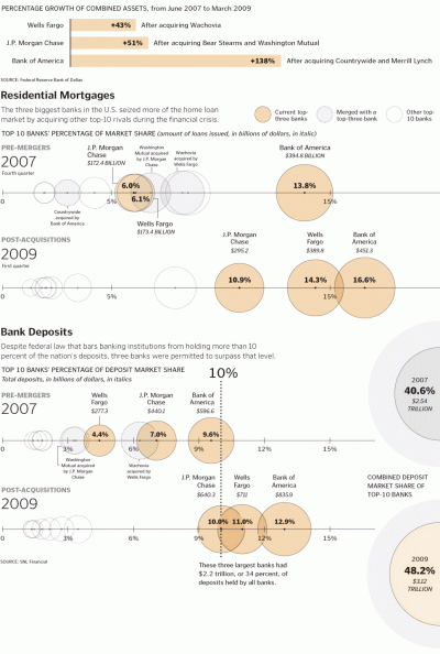 - Layering of the circles is confusing - banks are not related just because they have about the same percentage -> use bar/line charts instead, in order to make the chart more understandable.