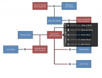 | Click on timeline | Highlights the person, aligns the birthday of the respective person to the jump mark, enlarges the satisfaction bar chart, highlights the consanguinity path. |
