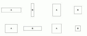 Kong, Heer & Agrawala asked participants to compare rectangular areas with varying size and aspect ratios. For this purpose they showed subjects images (Fig. 2) containing two rectangles (A or B) and asked them to identify which is the smaller one. Further they had to guess the percentage the smaller was of the larger rectangle.