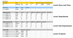 The VisMT application uses an object-oriented database with a hierarchical class structure. The retail data are defined in an Excel format and are converted to the hierarchical data structure. The components of the GAV component theoretically can work with every kind of data as for every type components can be developed and linked with each other.
